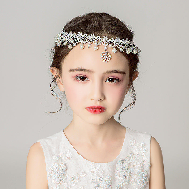 White Children’s Dress Accessories Lace Pearl Headpiece